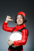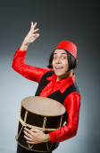 Mężczyzna w czerwonym kapeluszu fez