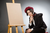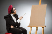 Zabawny artysta w ciemnym studio