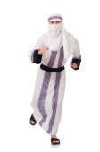 Kobieta w średniowiecznym arabskim ubraniu na białym