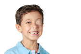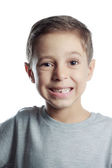 Mały chłopiec bawi się z tworzywa sztucznego pistoletem na wodę na białym tle.