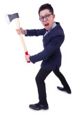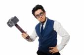Młody mężczyzna młoteczek na białym tle gospodarstwa