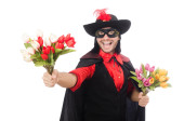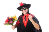 Dziewczyna w czarno-czerwonym karnawale garnitur izolowany na białym