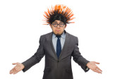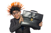 Zabawna bizneswoman w koncepcji biznesu na białym
