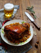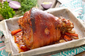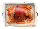 Zdjęcie "Pieczona golonka z wegetables na pokładzie drewniane." może być wykorzystywane do celów osobistych i komercyjnych zgodnie z warunkami zakupionej licencji Royalty-free. Obraz jest dostępny do pobrania w jakości wysokiej rozdzielczości do 5760x3840.