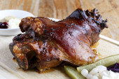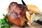 Pieczona golonka z wegetables na pokładzie drewniane.