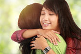 Dwóch młodych azjatyckich studentów śmiech, żartują razem