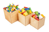 drewniane pudełko z wielu zabawek