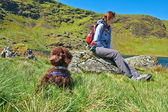 Kobiece wycieczkowicz spaceru z psem