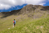 Kobiece wycieczkowicz spaceru z psem