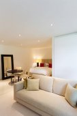Wygodne skórzane fotele z różowe poduszki w salonie