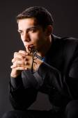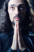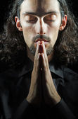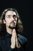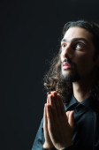 młody człowiek modli się w ciemności