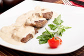 Pieczone mięso pod białym sosem