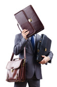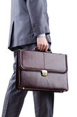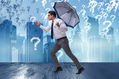 biznesmen z parasolem na biały