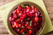Solonego łososia Sałatka z warzyw zbliżenie. Poziome góry vie