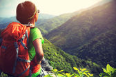 Turysta kobietę na szczyt