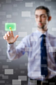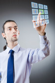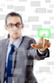 Biznesmen wciskający wirtualne przyciski