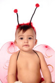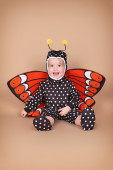 Cute adorable dziewczynka w nowy rok/Boże Narodzenie biedronka kostium na białym tle