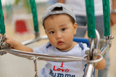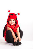 Cute adorable dziewczynka w nowy rok/Boże Narodzenie biedronka kostium na białym tle