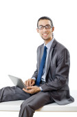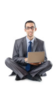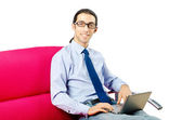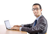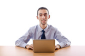 Busissman pracuje nad laptopem