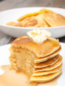 Zdjęcie "Naleśniki z masłem i syropem klonowym" może być wykorzystywane do celów osobistych i komercyjnych zgodnie z warunkami zakupionej licencji Royalty-free. Obraz jest dostępny do pobrania w jakości wysokiej rozdzielczości do 5760x3840.