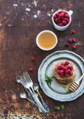 Zdjęcie "Zestaw śniadaniowy. Naleśniki gryczane" może być wykorzystywane do celów osobistych i komercyjnych zgodnie z warunkami zakupionej licencji Royalty-free. Obraz jest dostępny do pobrania w jakości wysokiej rozdzielczości do 5760x3840.