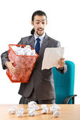 człowiek z dużo zmarnowanego papieru