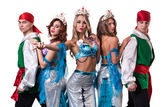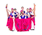 Kabaret tancerz zespołu tańca. na białym tle na białym tle w pełnej długości.