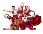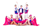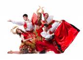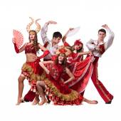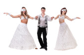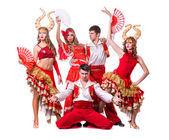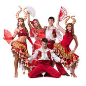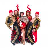 Kabaret tancerz zespołu tańca. na białym tle na białym tle w pełnej długości.
