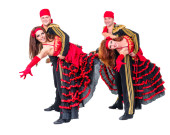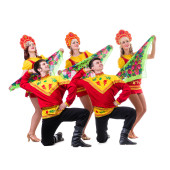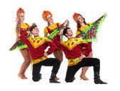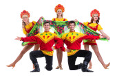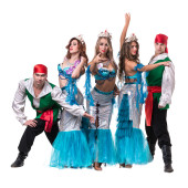 Karnawał tancerz zespołu przebrany za syreny i piratów. Na białym tle na białym tle w pełnej długości.