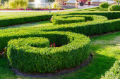 Boxwood bushes of ornamental garden. Rundale royal in Latvia.