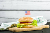 Zdjęcie "Amerykańskiej wołowiny hamburgera z serem" może być wykorzystywane do celów osobistych i komercyjnych zgodnie z warunkami zakupionej licencji Royalty-free. Obraz jest dostępny do pobrania w jakości wysokiej rozdzielczości do 5760x3840.