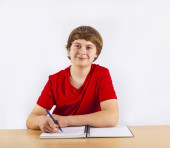 inteligentny chłopiec nauki w szkole