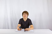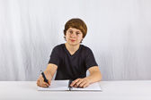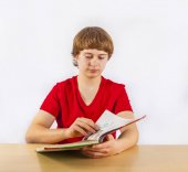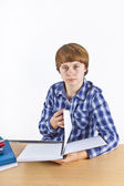 inteligentny chłopiec nauki w szkole