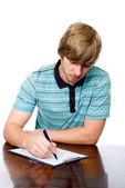 inteligentny chłopiec nauki w szkole