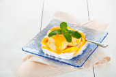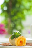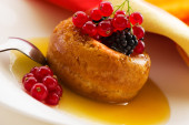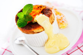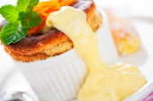 Cointreau or whiskey soufflé with orange, mint and vanilla sauc