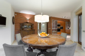 Zdjęcie "Drewniany stół w kuchni współczesnej" może być wykorzystywane do celów osobistych i komercyjnych zgodnie z warunkami zakupionej licencji Royalty-free. Obraz jest dostępny do pobrania w jakości wysokiej rozdzielczości do 5760x3840.