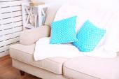 Kolorowe poduszki na kanapie