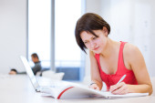 bardzo młodych Kolegium student studia w bibliotece
