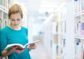 studentka college'u w bibliotece
