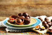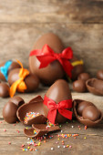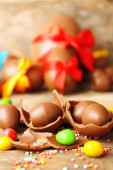 Zdjęcie "Czekoladowe pisanki na drewnianym tle" może być wykorzystywane do celów osobistych i komercyjnych zgodnie z warunkami zakupionej licencji Royalty-free. Obraz jest dostępny do pobrania w jakości wysokiej rozdzielczości do 5760x3840.