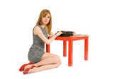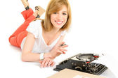dziewczyna przeglądanie kanałów tv i uśmiechając się