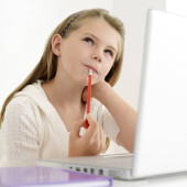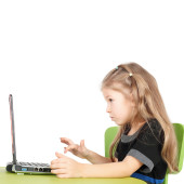 Zdjęcie "Mała dziewczynka siedzi w pobliżu laptopa i myśli" może być wykorzystywane do celów osobistych i komercyjnych zgodnie z warunkami zakupionej licencji Royalty-free. Obraz jest dostępny do pobrania w jakości wysokiej rozdzielczości do 5760x3840.