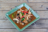 Zdjęcie "pikantne kalmary i smażyć kraba z ziela" może być wykorzystywane do celów osobistych i komercyjnych zgodnie z warunkami zakupionej licencji Royalty-free. Obraz jest dostępny do pobrania w jakości wysokiej rozdzielczości do 5760x3840.