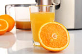 Zdjęcie "Ze stali nierdzewnej sokowirówki z kieliszek soku pomarańczowego na drewniane tła, z bliska" może być wykorzystywane do celów osobistych i komercyjnych zgodnie z warunkami zakupionej licencji Royalty-free. Obraz jest dostępny do pobrania w jakości wysokiej rozdzielczości do 5760x3840.