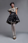 elegancki Azji kobieta moda retro sukienka pozowanie na podium