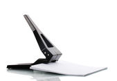 Dziurkowanie biuro czarny z papieru na niebieskim tle