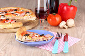 aromatyczna pizza i cola na drewniane tła