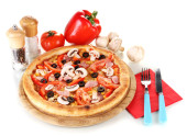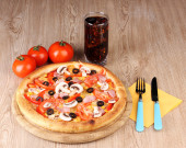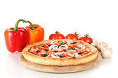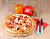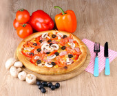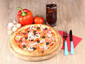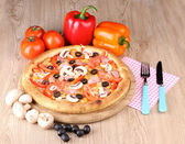 aromatyczna pizza z warzywami i grzybami na drewniane tła