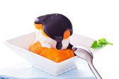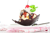 francuskie tosty z ciemnej czekolady, biały krem, czerwony, Wiśniowy i