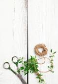 Mieszanka ziół na drewnianym stole z kopii przestrzeni